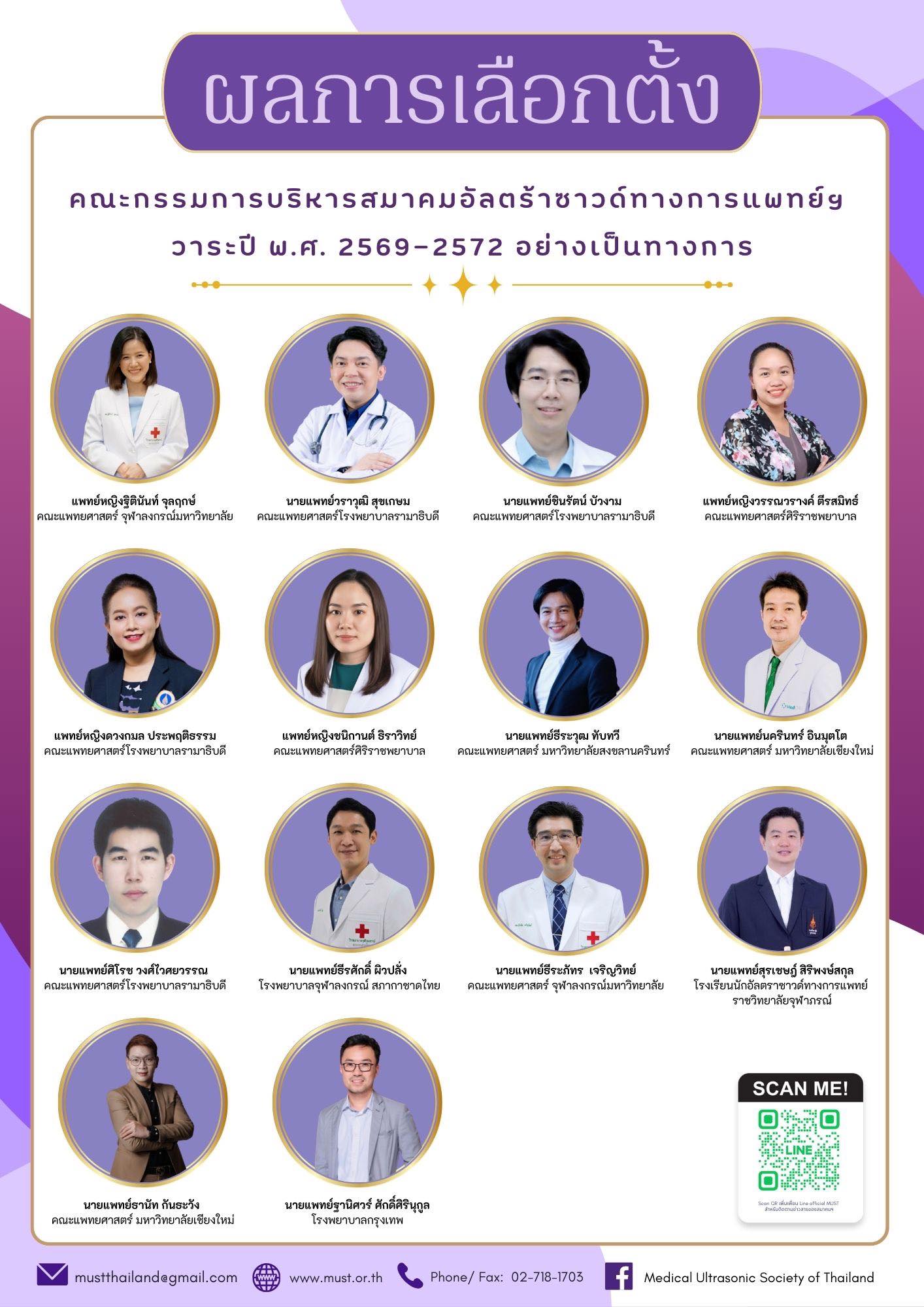 สมาคมอัลตร้าซาวด์ทางการแพทย์แห่งประเทศไทย ขอแจ้งผลการเลือกตั้งคณะกรรมการบริหาร